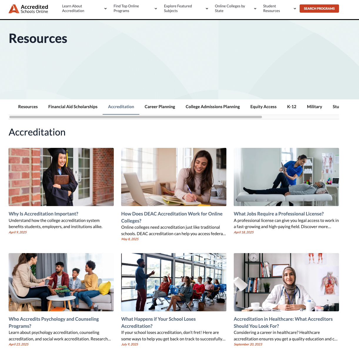 Conceptualized and launched the Accreditation Hub, a content initiative focused on demystifying accreditation for prospective students.